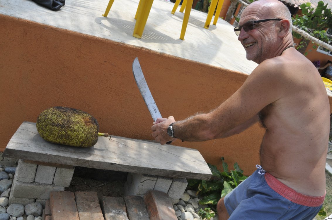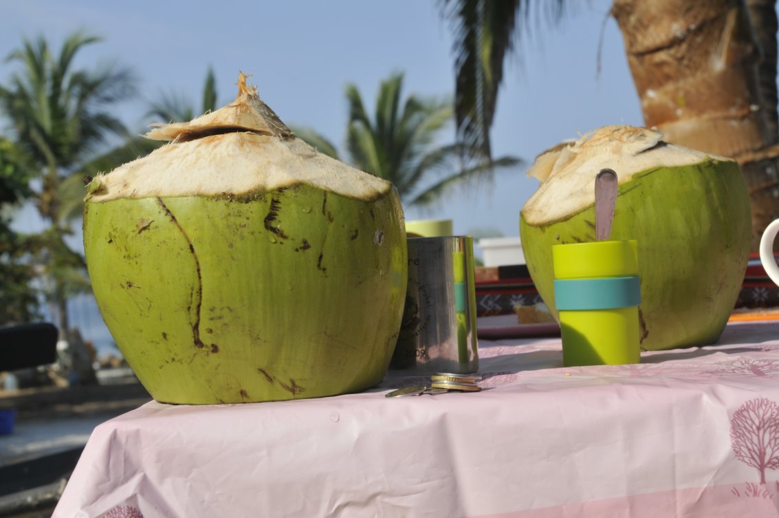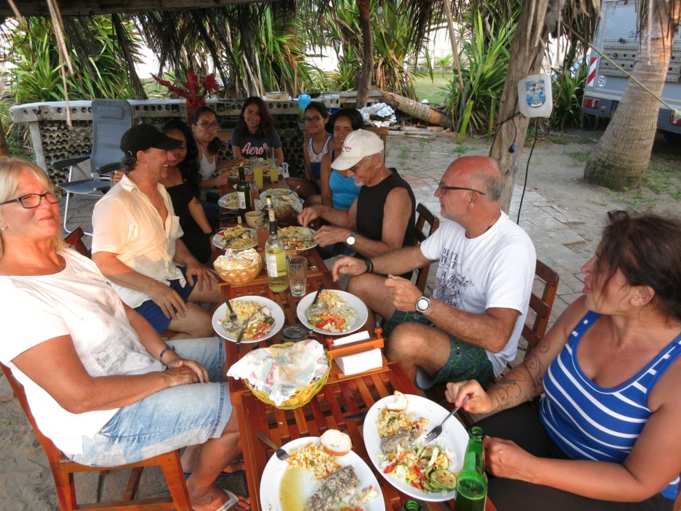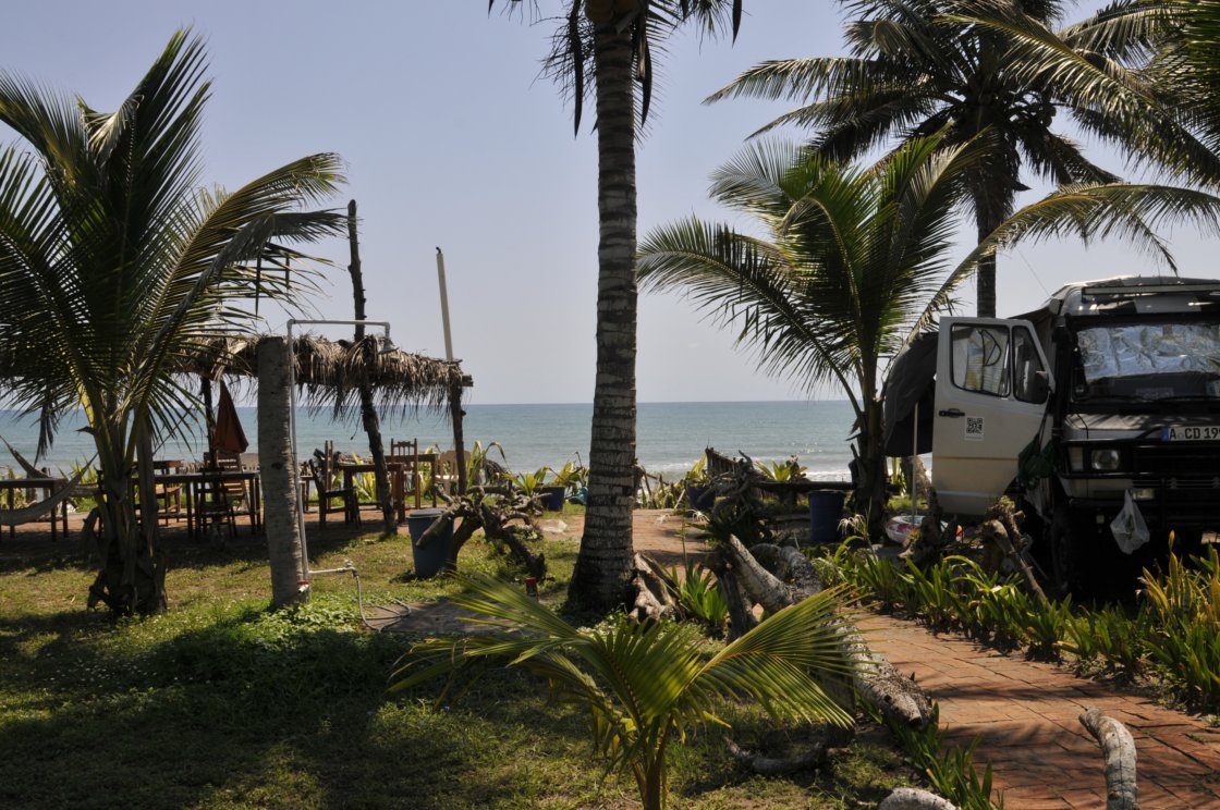 Dort treffen wir auch Peter und Maria. Sie haben auch einen (sehr sehr schönen) Merceds Bus. Wir verbingen ein paar sehr lustige Tage in Gesellschaft. Es gibt frische Kokosnuss direkt von der Palme (keine Sorge die Palme steht noch, ich bin nicht hochgeklettert ;-) )
