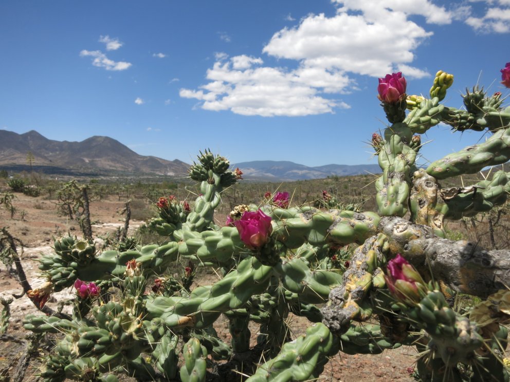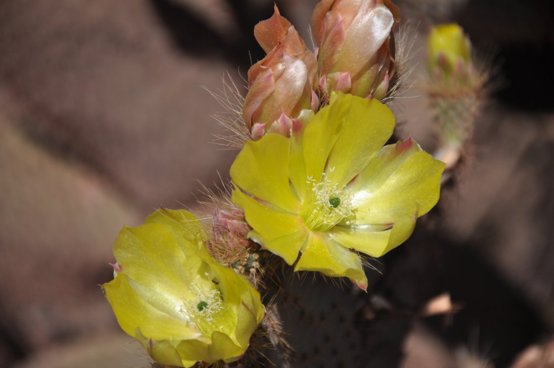 Ab hier fahren wir durch ein karges Hochland... aber es hat wohl vor ein paar Tagen geregnet (vermute ich). Die Kakteen blühen - wunderschön!!!