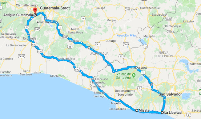 El Salvador... wo war das nochmal???? In Antigua treffen wir Bekannnte wieder für einen Abend. Sie wollen nach Salvador zum Surfen. Naja, wir haben ja auch eigentlich nix wichtiges vor.... also fahren wir einfach auch hin, und schauen mal.