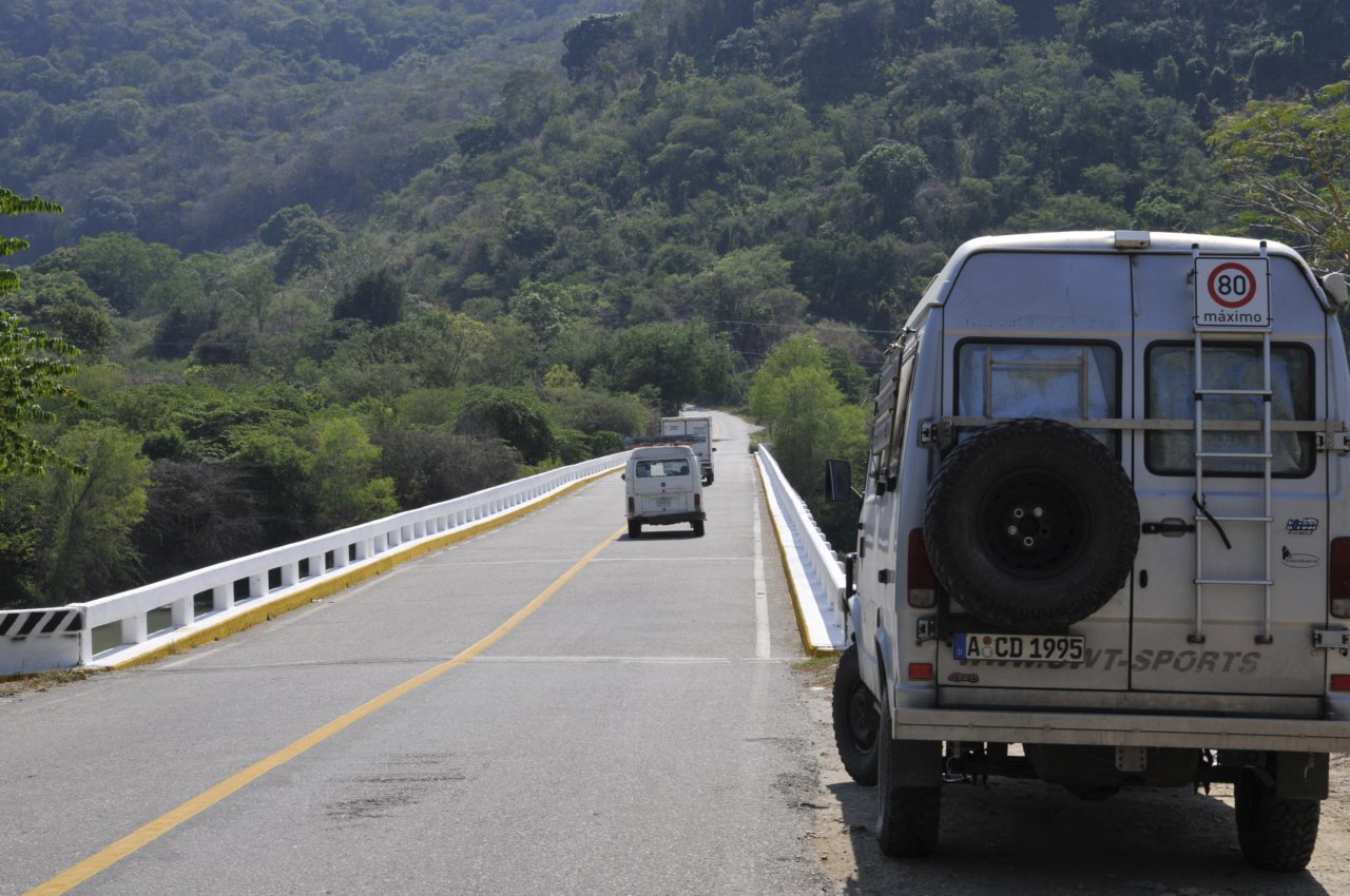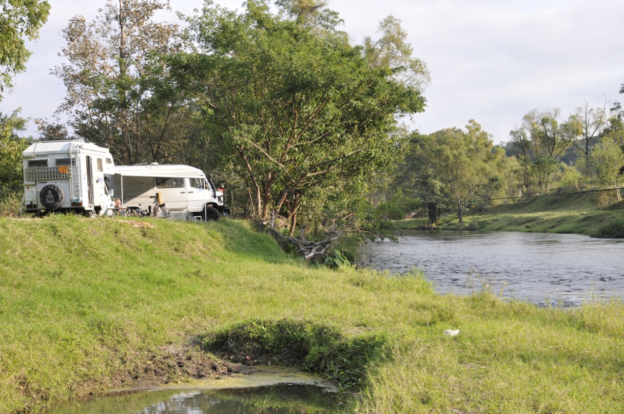 aber dann kommt es doch anders. Vor Silvester kommen so viele Mexis (wie hier die Mexikaner liebevoll genannt werden) ruter an die Küste um hier zu feiern, dass es uns einfach zu eng wird. Also fahren wir - zusammen mit den Schweizern Martin und Janette (Landruiser am Bild oben) - eine Stinde in Richtung Berge. Hier ist ein traumhafter Fluß, und ganz toller Regenwald. Tagsüber ein paar Menschen (alle super nett). Ganz schön. Hier verbringen wir einen sehr schönen Jahreswechsel.