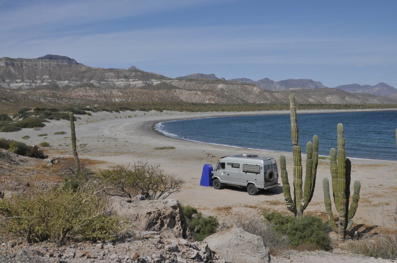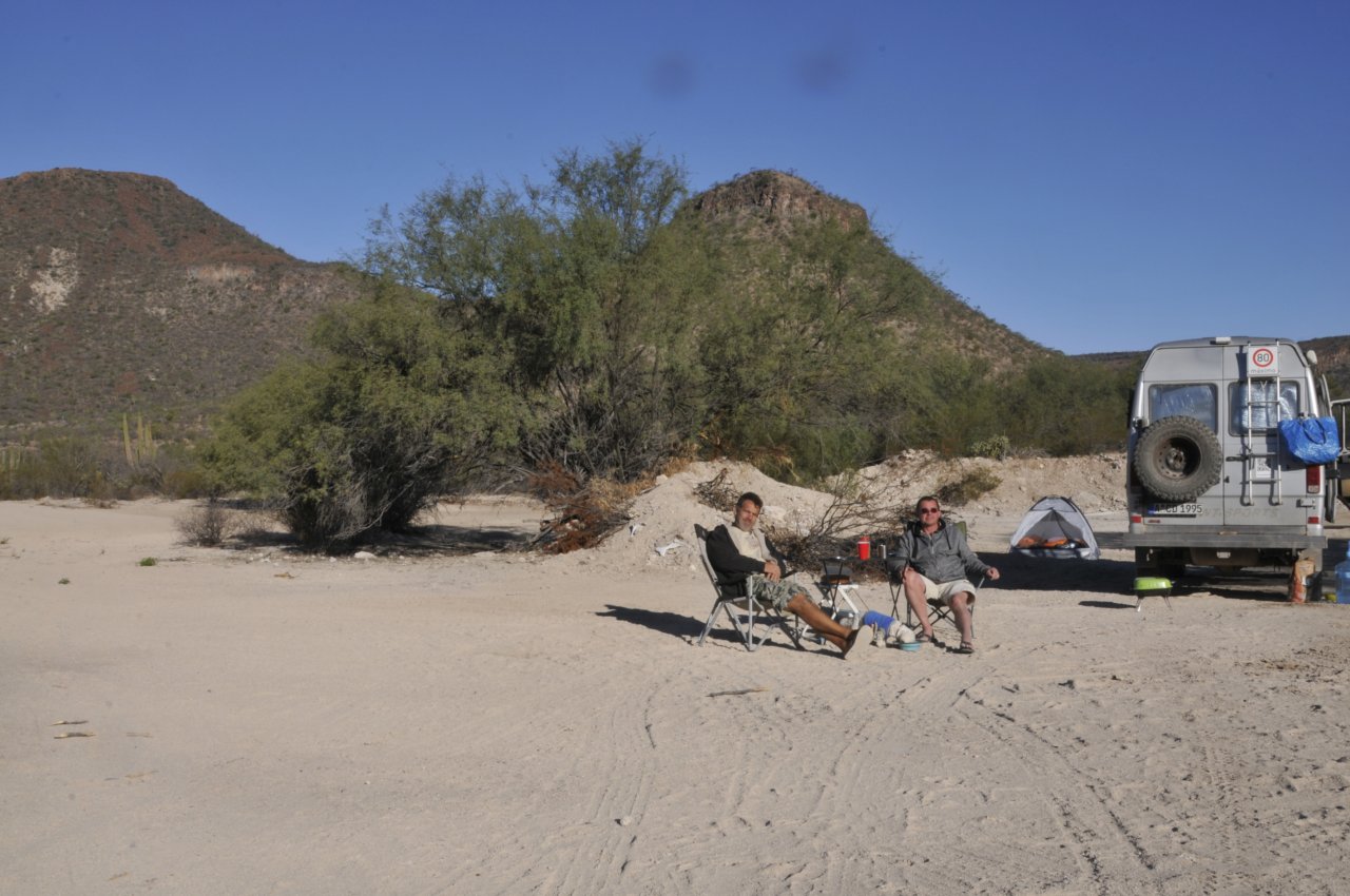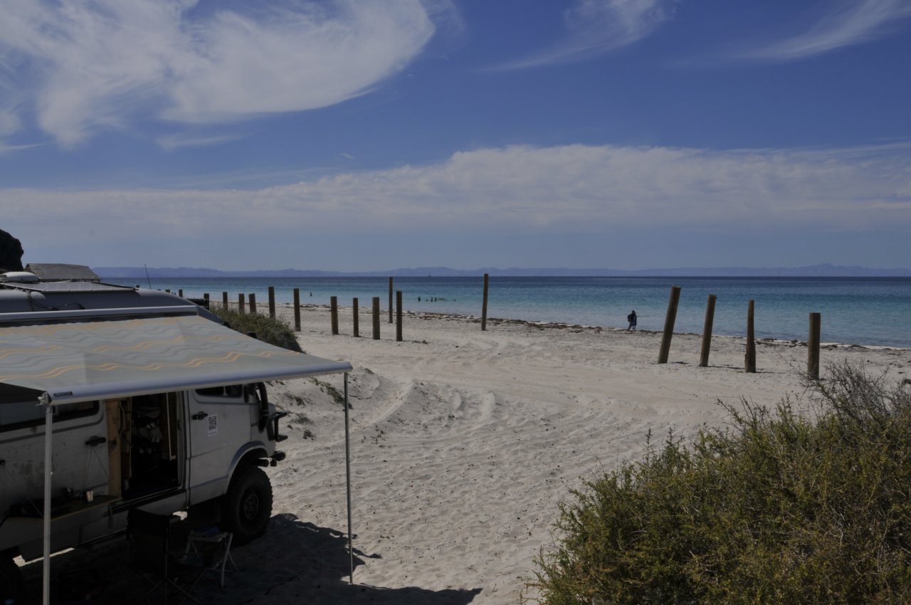 Nach der langen Fahrt zu den Walen wollen wir an einem der traumhafen Sandstrände an der Westküste der Baja ausspannen. Und das machen wir auch. Einfach schön da!