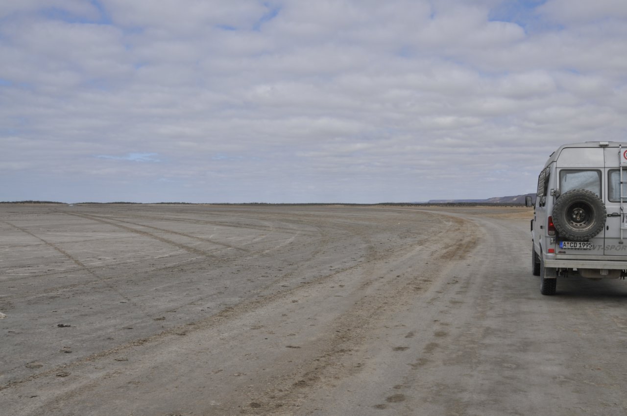 Hat gut gewackelt... aber geschafft. Bevor wir endlich zu den Walen kommen überqueren wir noch ganz tolle Salzpfannen. Wir kommen uns fast vor wir in Bolivien...