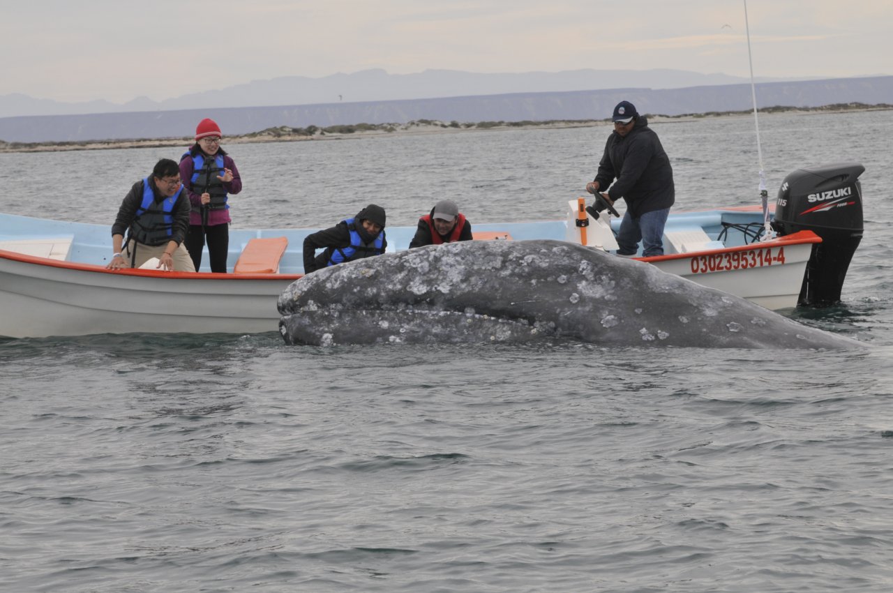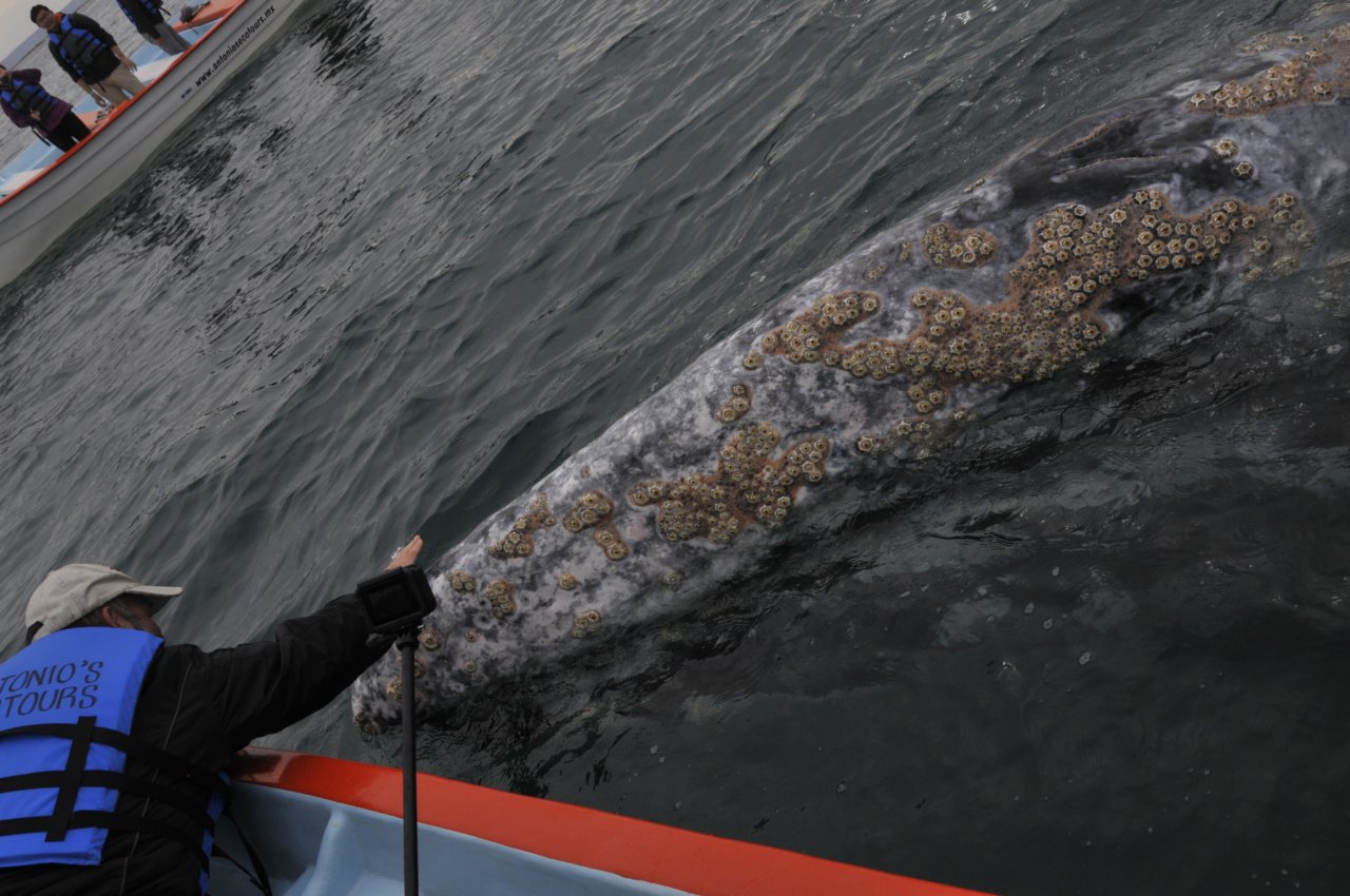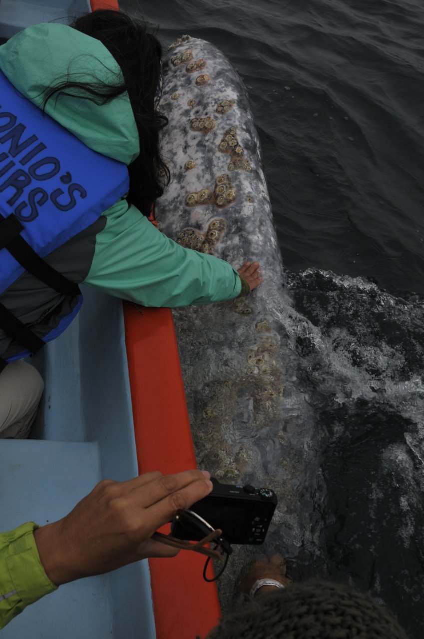 Die Grauwale kommen im Winter hier in die Buchten an der Pazifikküste der Baja zum kalben. Das ist ein tolles Spektakel. Wir haben bis zu 60 der Riesen in der Bucht gesehen. Die haben da richtig Spaß, und mit Glück kommt eine (oder einer - konnten wir nicht rausfinden) zum Boot.