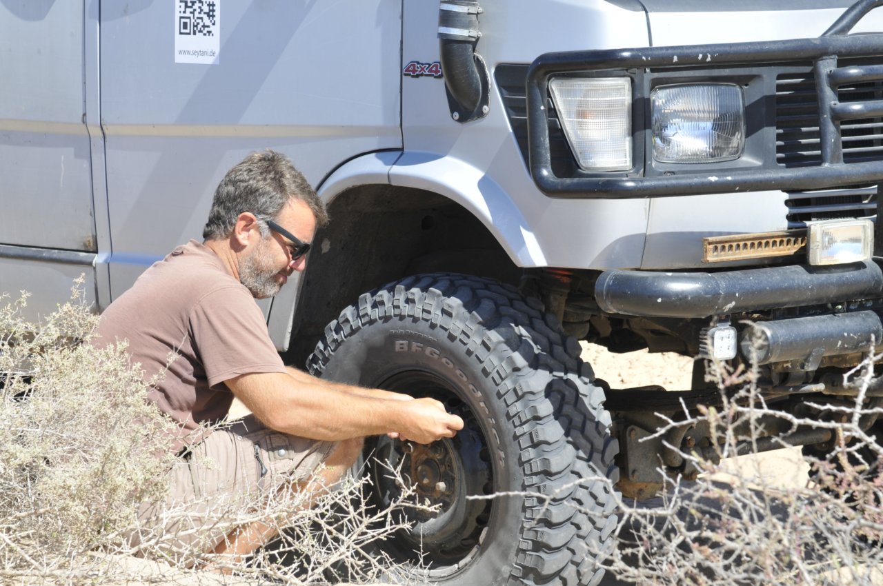 Ab jetzt wird die Piste sandig... also muß da erst mal Luft raus.